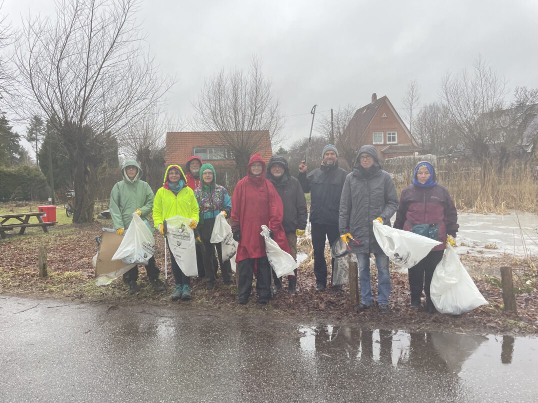 Am Sonntag, den 22.02.2026 um 11.00 Uhr trafen sich Zwölf unerschrockene Bergstedter, um bei Dauerregen im Stadtteil aufzuräumen. Im Hainesch Iland und rechts und links der Bergstedter Chaussee wurde fleißig gesammelt und die gut gefüllten Säcke zur Abholung am Bergstedter Markt abgestellt!